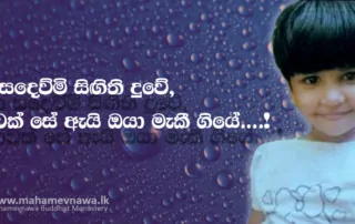 මගේ සිඟිති දුවේ, ඔයාගේ පණිවිඩය මෙයයි. ඔයා ජීවිතයෙන් වන්දි ගෙවා ලංකාවම අවදි කෙරෙව්වා. දැන්වත් දෙමව්පියන් දරුවන් සමග ධර්මයට පැමිණීම මැනවි.