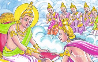 සක් දෙවිඳුගේ වචනය ඇසූ මාතලී රථය නැවැත්තුවා. වෙනත් මගකින් යන්ට රථය දෙව්ලොව පැත්තට හැරෙව්වා. රථය නවතාලූ විට අසුරයෝ මෙහෙම හිතුවා. ‘ඒකාන්තයෙන් ම අනිත් සක්වල වලින් ශක්රයෝ එනවා වගෙයි. බලය ලබාගෙන අපට බැටදෙන්ට යි රථය හැරෙව්වේ’ කියලා බියට පත්වුනා....